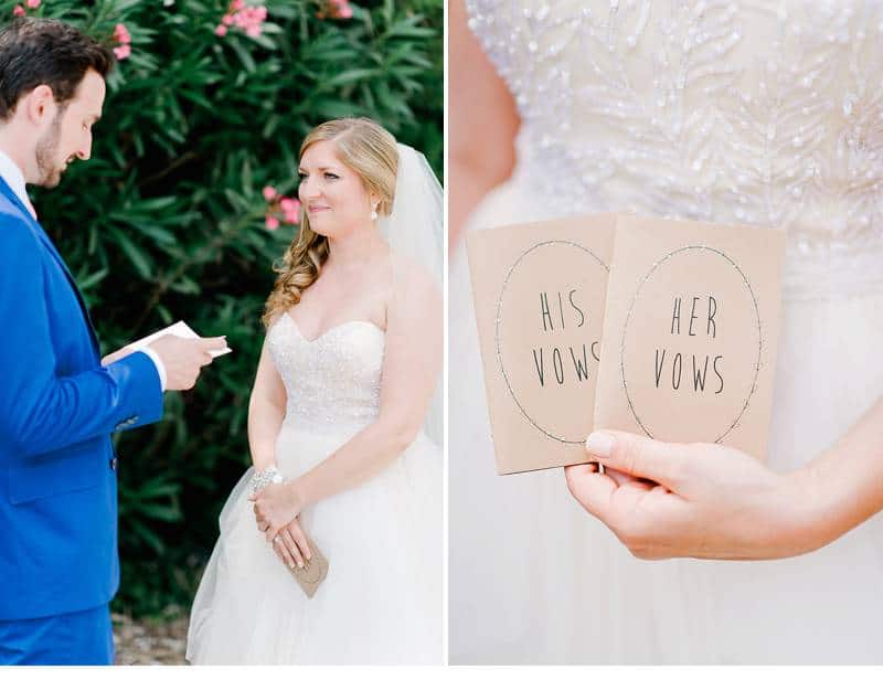 At the „first look“ – the moment when bride and groom first meet before the wedding – they cry happy tears: they perform their own wedding vows.