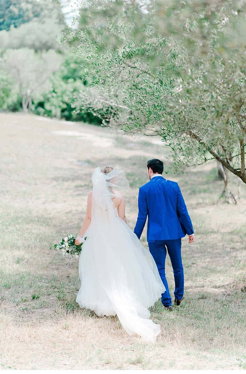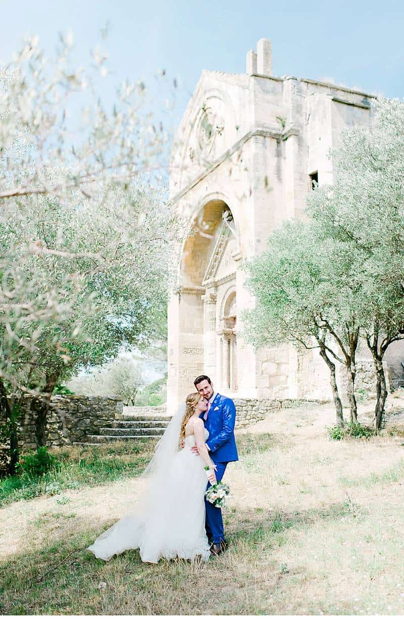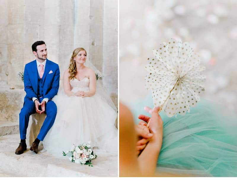A breathtakingly old building hides behind the wonderfully blooming trees in the heat of the summer. Especially the scenic aspects of this wedding in South France win over the guests.